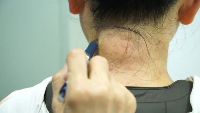 对于肌筋膜炎的中医治疗,周振坤主任是通过火罐、水罐、针灸针的组合方式来进行的。周振坤主任指出,首先要确定患者颈肩部位筋结病灶的点,用手去触诊,通过摸索找到紧僵硬滑的部位,手摸的时候会有条索状。找到病灶点后,先用拔火罐按肌肉巡行的走向给它走罐。走完罐后,再用水罐,在病灶点进行拔罐。